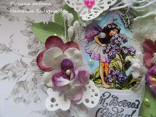Фея, спрятавшаяся в волшебных цветах... очень нежная, красивая открытка! Спасибо за совместное творчество с блогом SL!